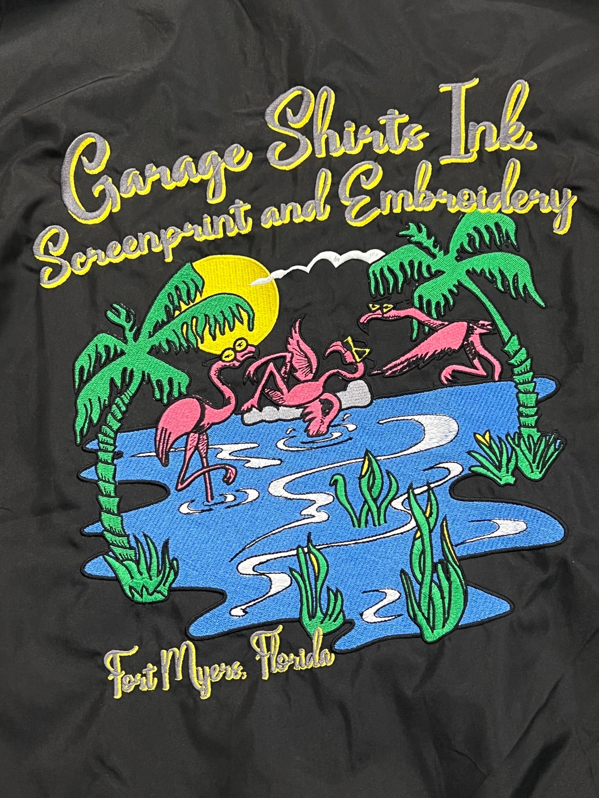 In Honor of my late neighbor George The Glassman RIP my boy! Embroidered front with huge embroidered back. This super lightweight bomber jacket gets attention every time I wear it!